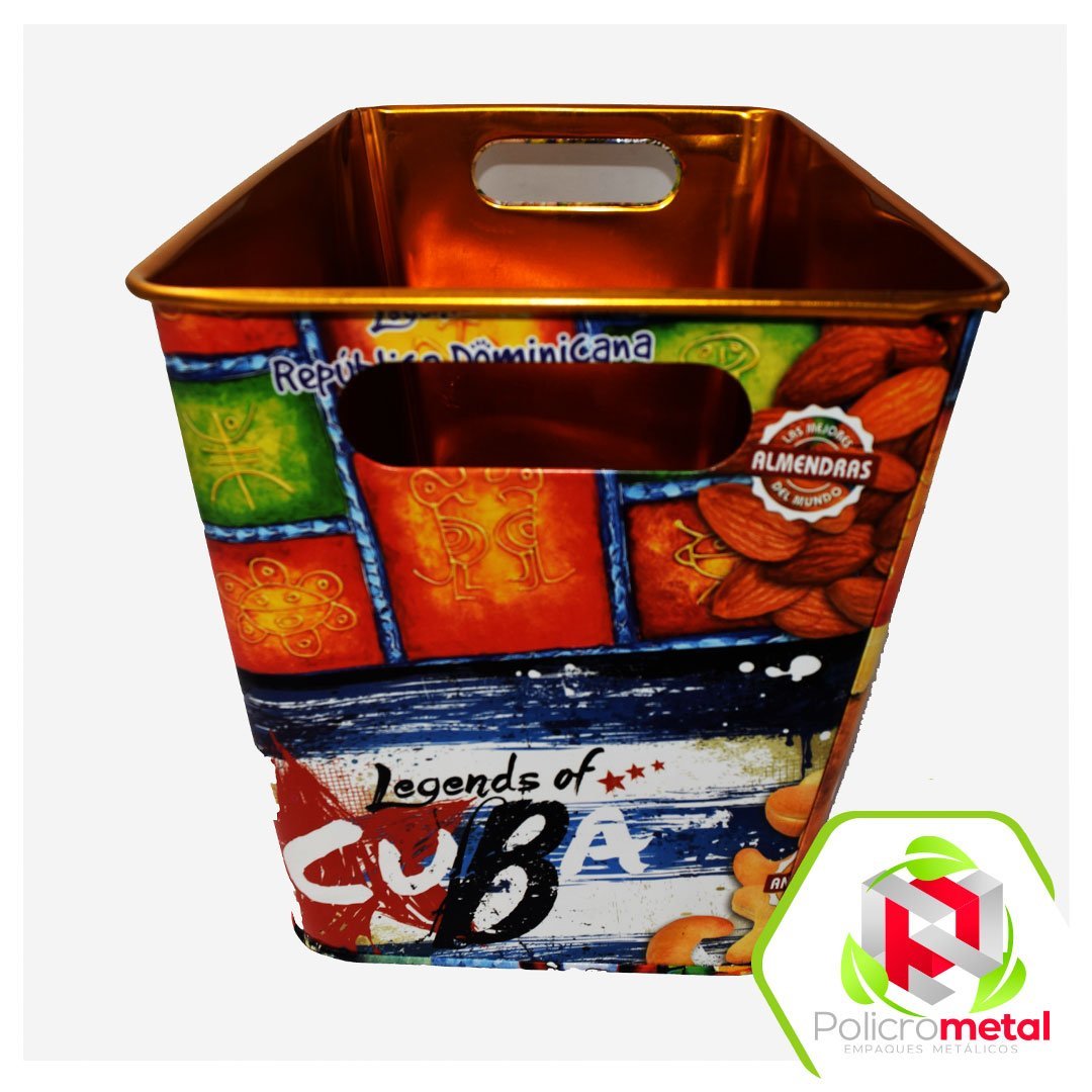 - Acabado: Hielera rectangular metálica con arte externo Cuba, interior dorada con manijas a los lados