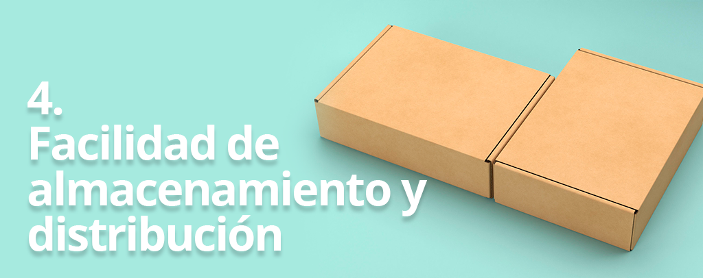 Tu producto puede estar en almacenamiento antes de ser exhibido, por lo que el empaque debe permitir un fácil almacenamiento y distribución. Minimiza los costos de embalaje y el transporte para llevarlo a tu distribuidor o tus ganancias pueden verse afectadas.