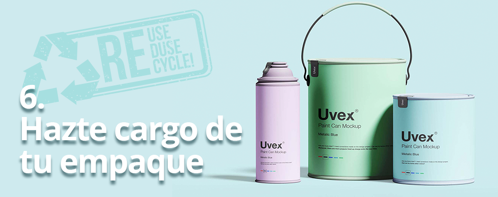 Escoge materiales reciclados, reciclables y biodegradables, que puedan ser gestionados para darles un nuevo uso. Mejor aún si puedes desarrollar un empaque tan hermoso y durable que tu consumidor no quiera deshacerse de él.